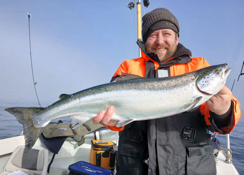 Futterfische und Lachse sind jeden Tag zu sehen und die ersten Lachse sind auch an Bord gekommen.